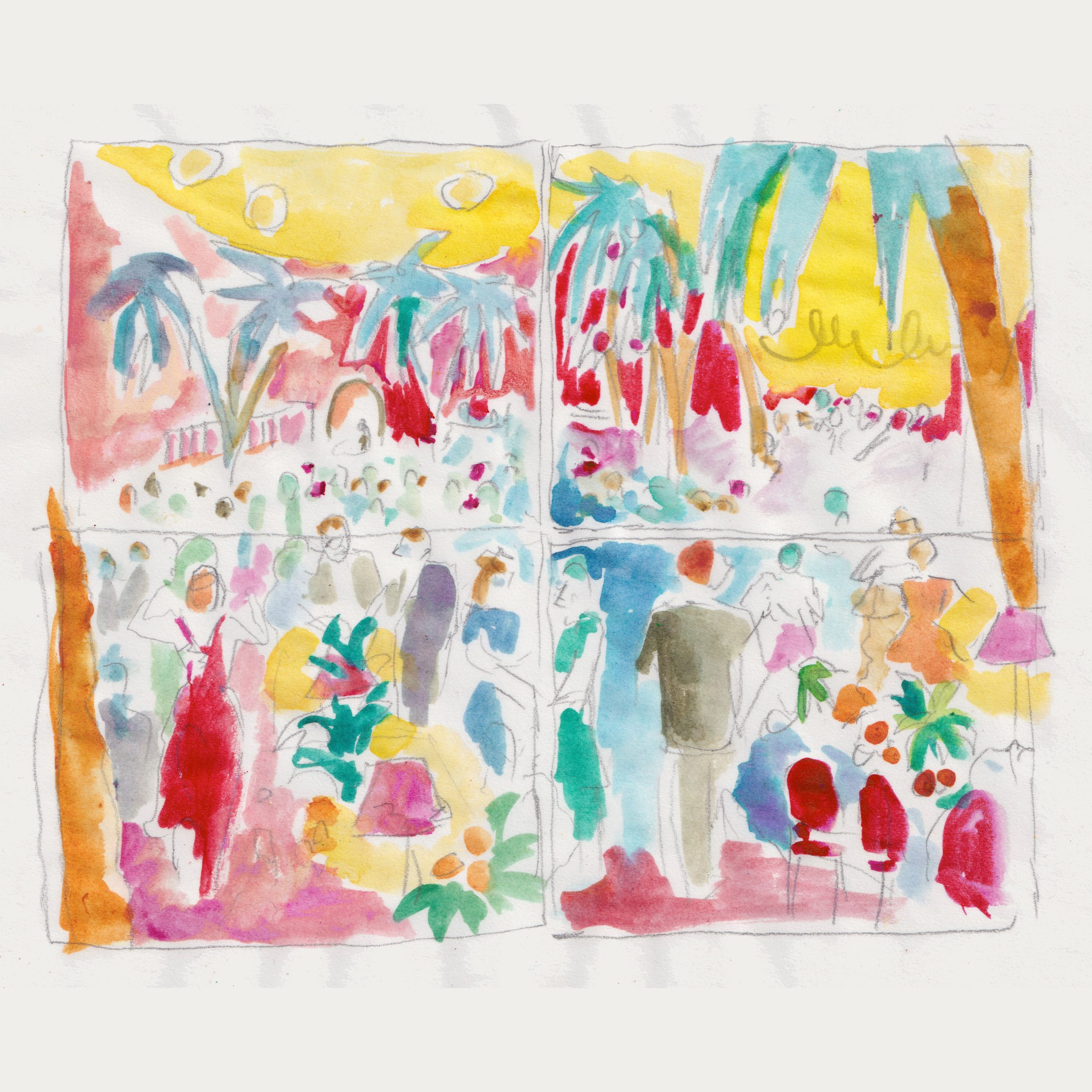 My studio team is a cyclone of ingenuity, tirelessness, and perfectionism. Hillary, our business director, is on an 8:30pm call with a bride in China, her desk buried in 280 packages wrapped with 280 seaglass green silk ribbons that she personally tied when an assistant got hit with the flu. Sarah, our calligrapher and art director, is addressing a stack of envelopes in indigo ink with a paintbrush, pausing to sketch a monogram that looks like she wrought it in iron. Vanessa, our designer and director of digital media, is troubleshooting how to animate a zodiac wheel directing guests to a celestial party in Marrakech, transforming my crude sketch into a glittering night sky. Also props to the interior designer Fernando Santangelo who hired me to do the murals at Nine Orchard, the hotel on the Lower East Side of Manhattan, of which I’m so proud and grateful… and my mom, the decorative painter Katharine Barnwell. She taught me everything!